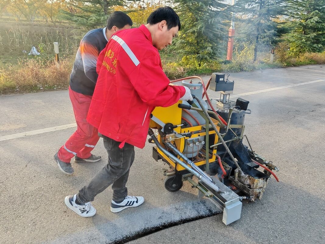 2.Use a thermoplastic boiler to heat the elastic asphalt patching material to 280 ℃